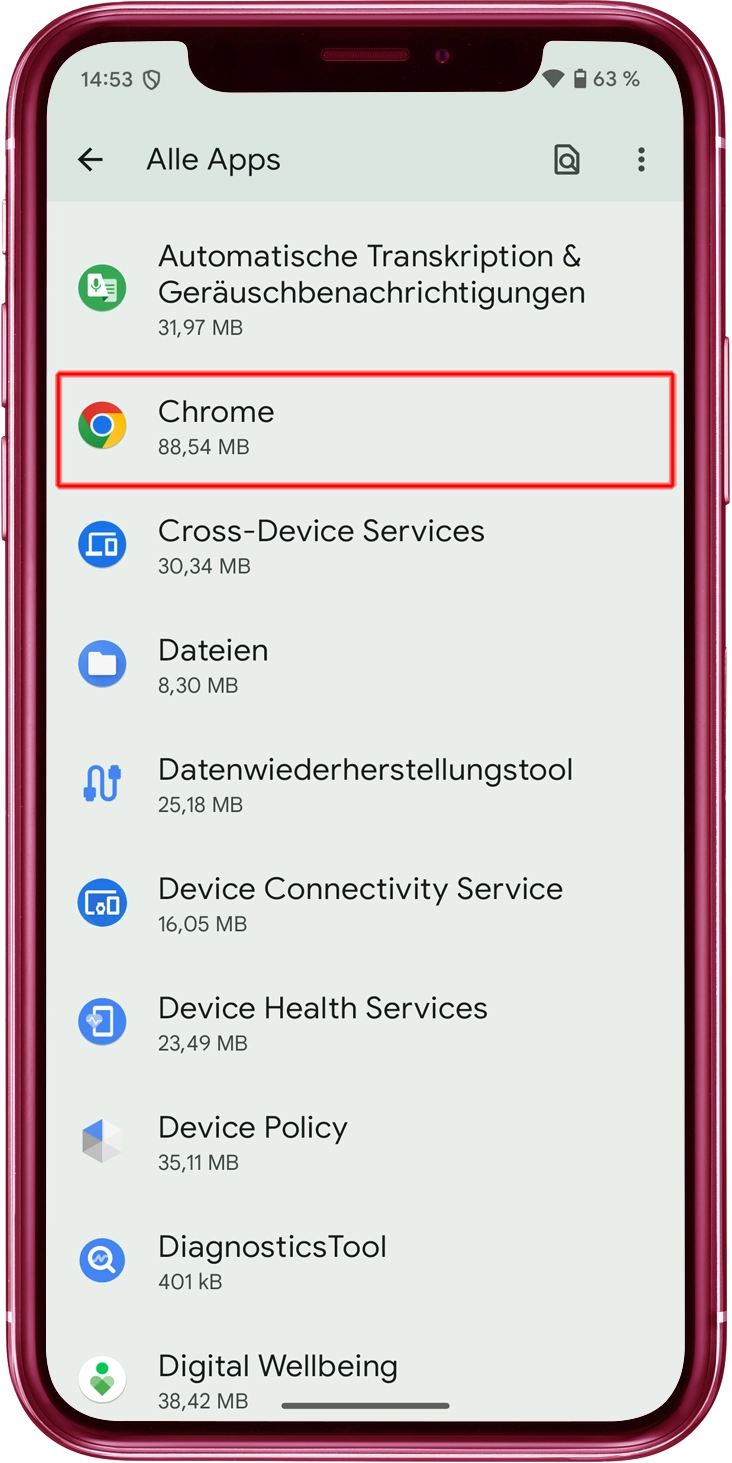 Tippen Sie auf das Chrome-Symbol in "Kürzlich verwendete Apps", "App-Info" oder "Alle Apps".