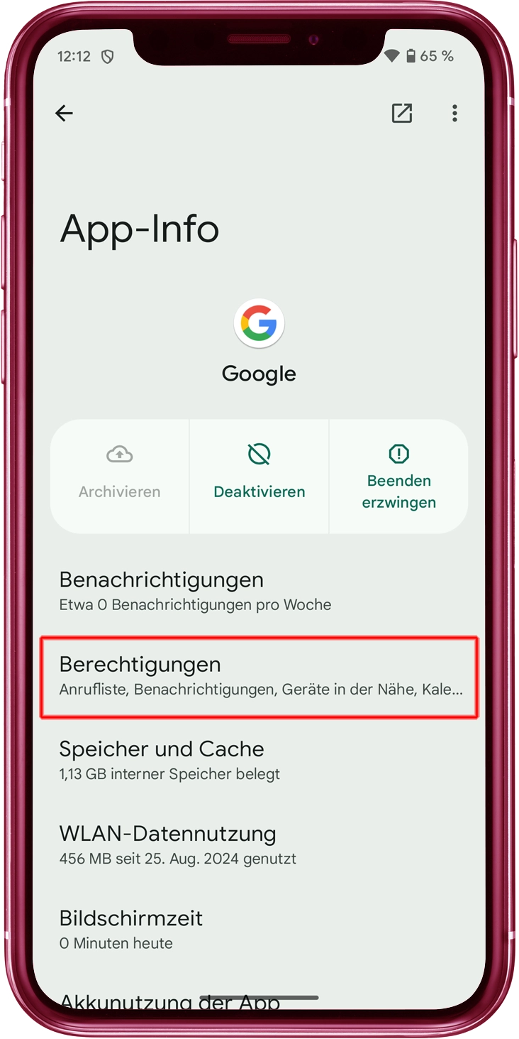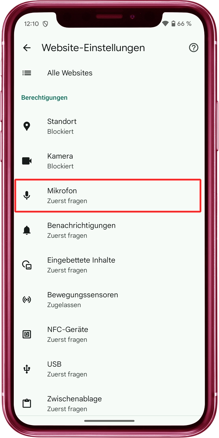 Tippen Sie auf "Mikrofon" in den "App-Berechtigungen".