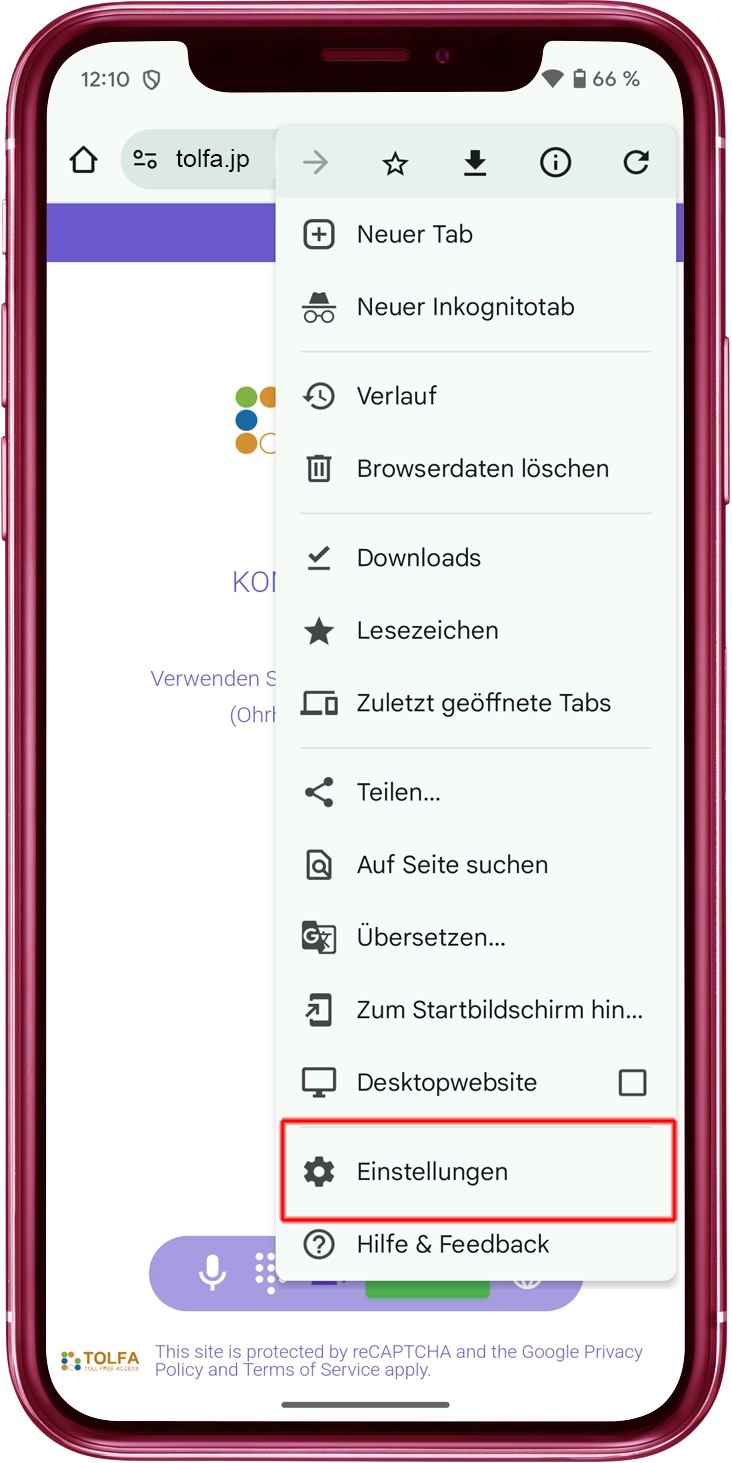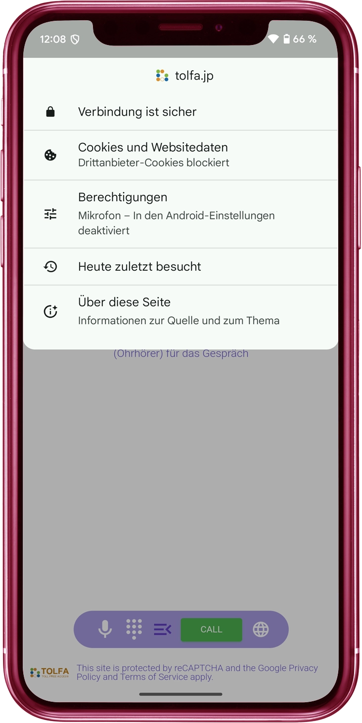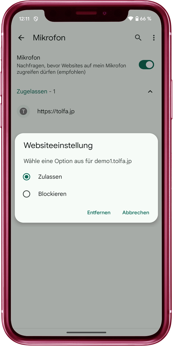Wenn der Zugriff auf das Mikrofon derzeit nicht gestattet ist, sollten Sie die Website "tolfa.jp" in einer Liste finden und den Mikrofonzugriff dafür aktivieren.