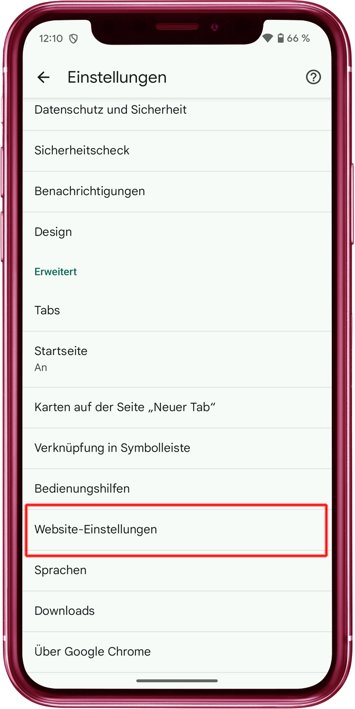 Tippen Sie im Menü auf "Website-Einstellungen".