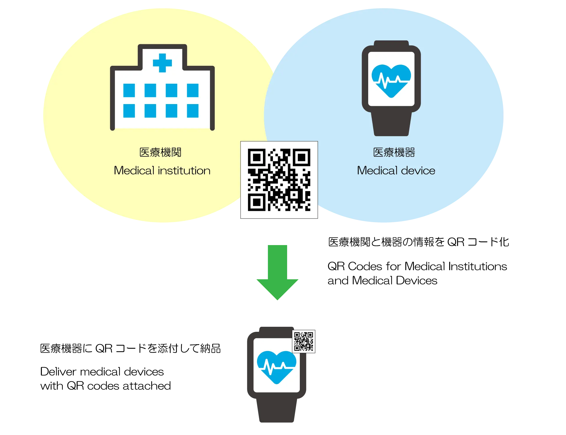 You can create a URL in advance that includes information used to identify the medical facility and the device. A QR code generated from this URL can be placed directly on each individual device. The information included in the URL can be defined freely, allowing you to adjust it to match your operational needs.