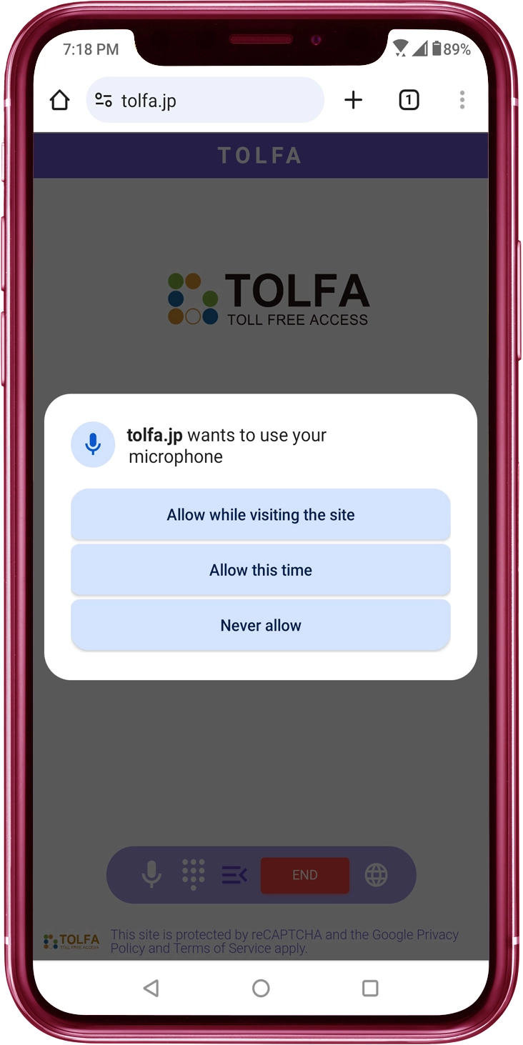 When you tap on the inquiry button on the website or scan the QR code, the TOLFA user interface for making calls will appear.