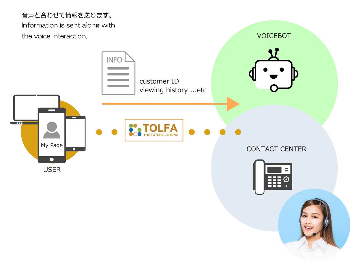 Information that could not be passed during traditional phone calls can now be delivered to a voicebot or PBX. When details are sent from the browser to TOLFA, TOLFA encrypts that information and passes it on to the voicebot or PBX.