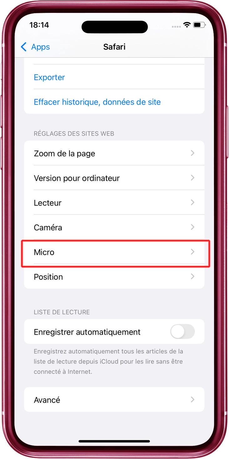 Appuyez sur "Microphone".