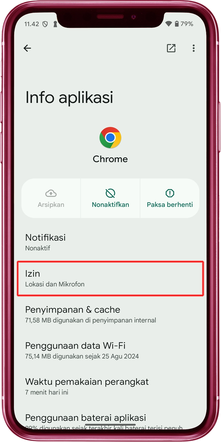 Ketuk "Izin" di menu.