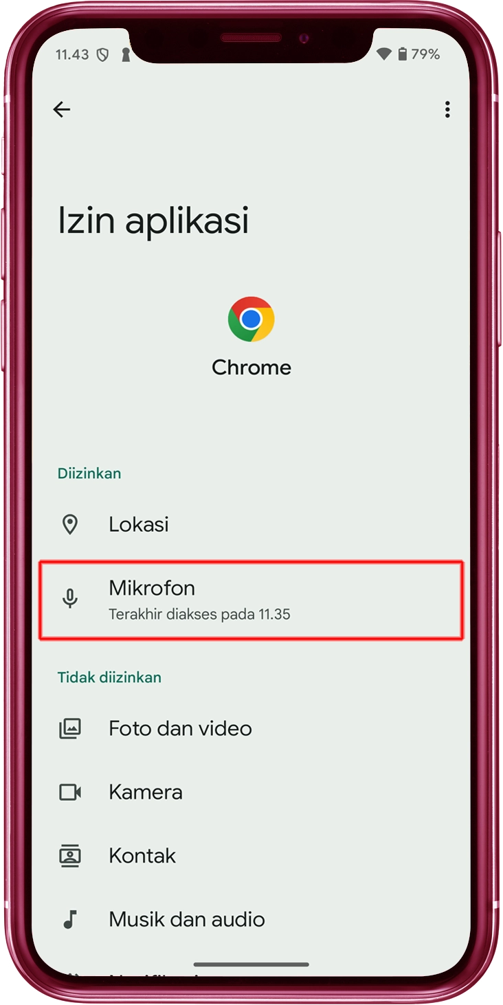 Ketuk "Mikrofon" di "Izin aplikasi".