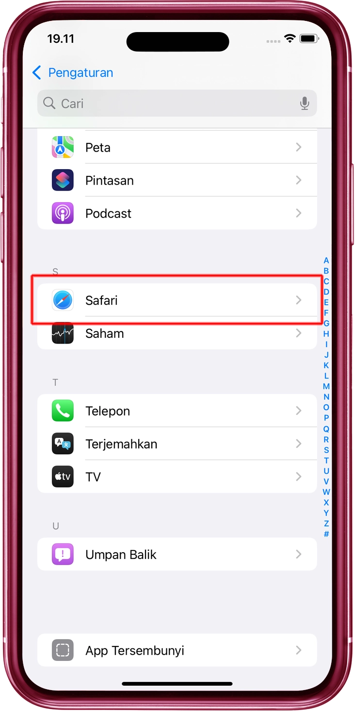 Buka "Aplikasi" dari "Pengaturan," dan ketuk "Safari".