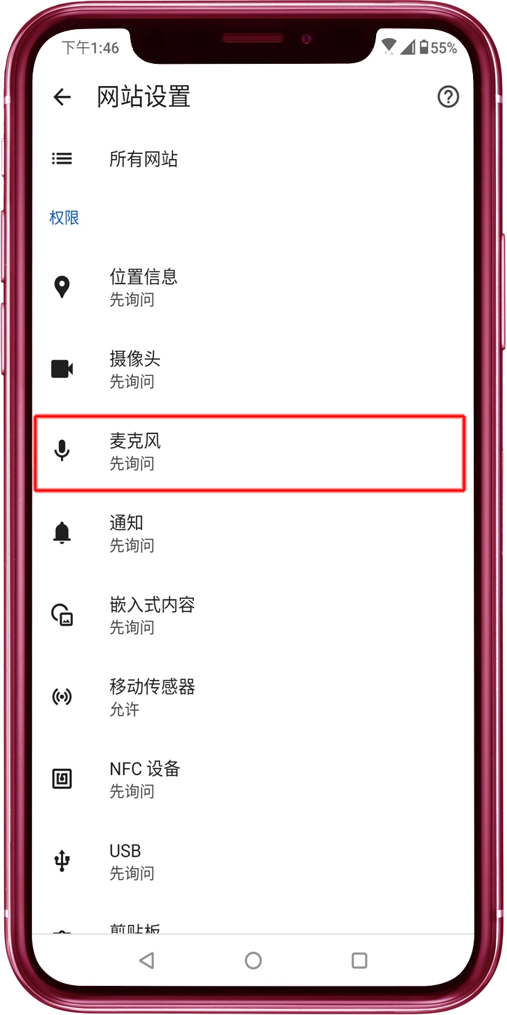 如果当前未允许麦克风访问,您应在列表中找到网站“tolfa.jp”,然后为其启用麦克风访问。