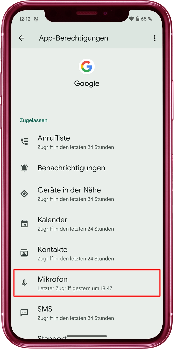 Tippen Sie auf "Mikrofon" in den "App-Berechtigungen".