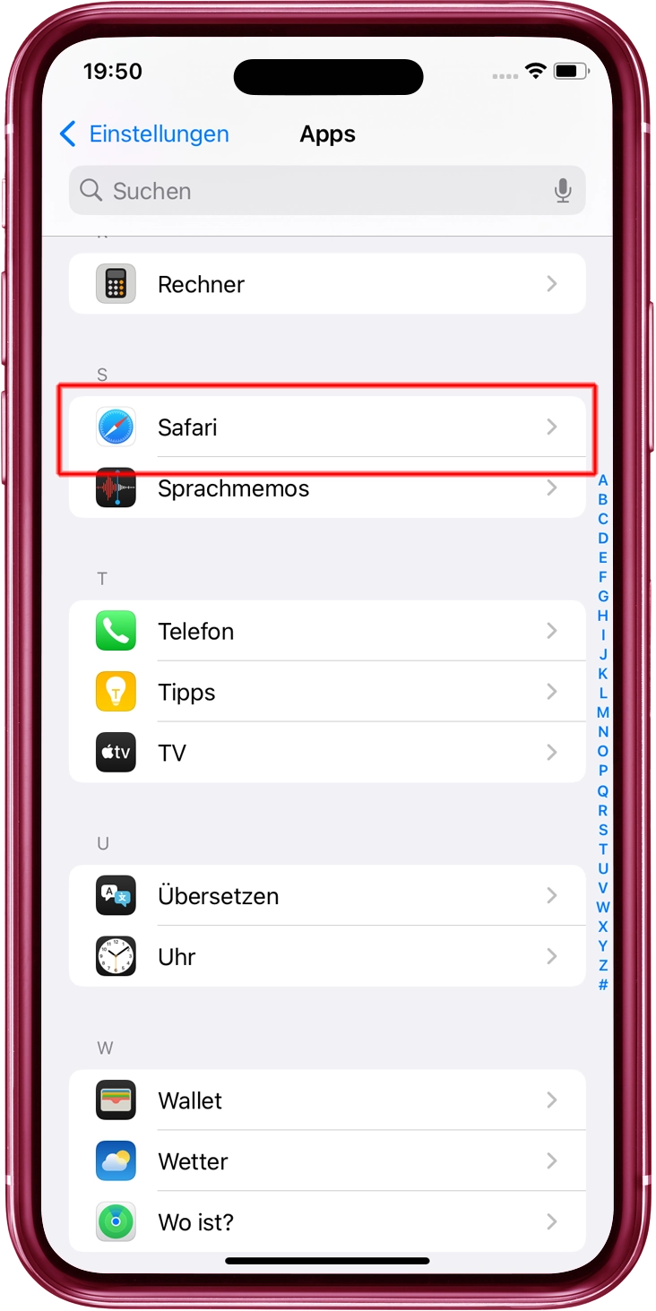 Öffnen Sie "Apps" aus den "Einstellungen" und tippen Sie auf "Safari".