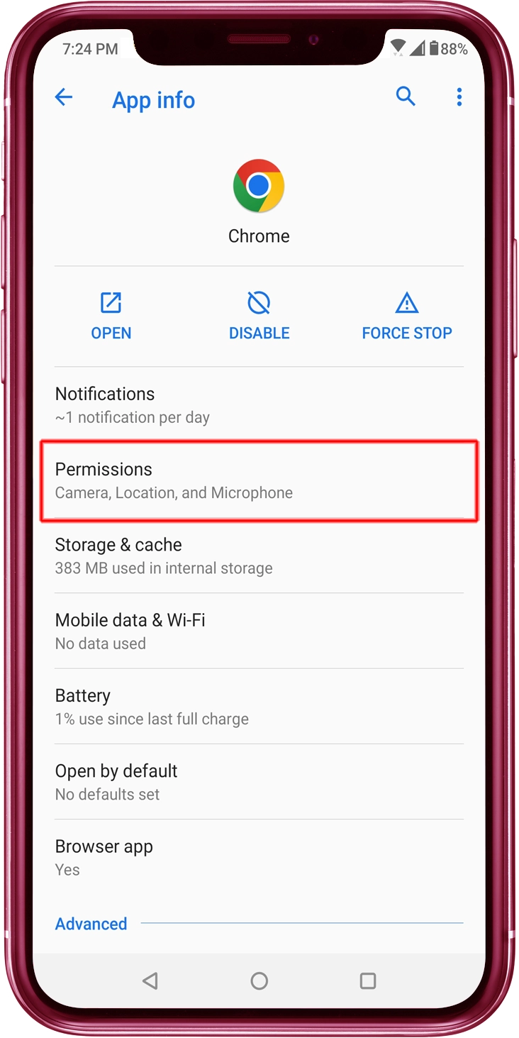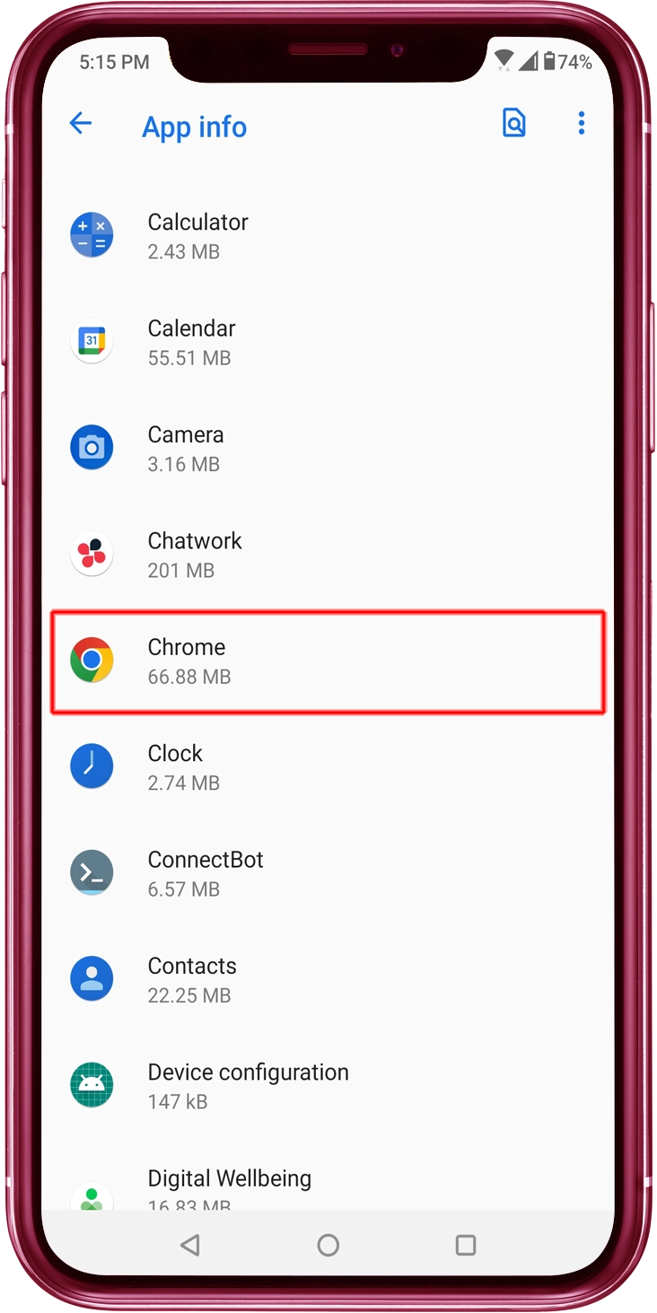 Tap the Chrome icon from "Recently opened apps," "App info," or "All apps."