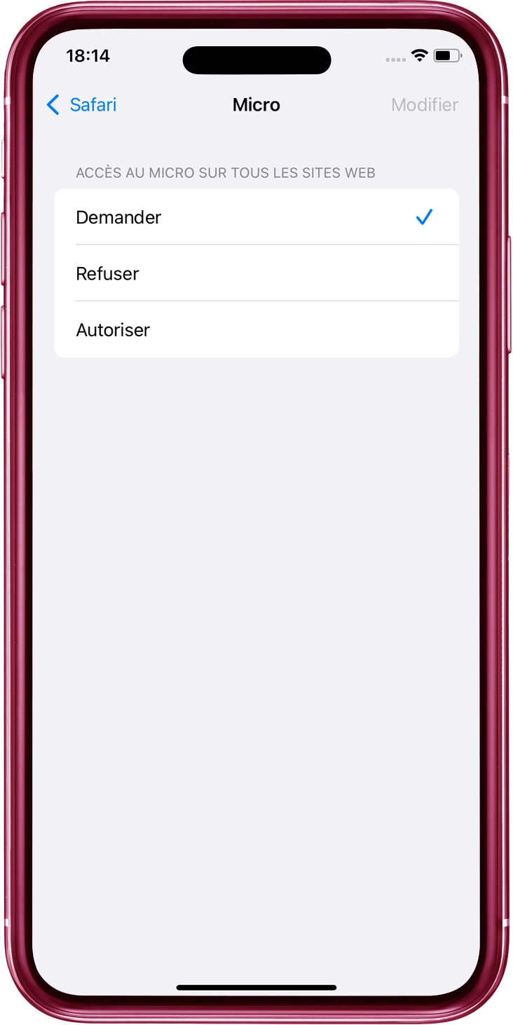 Appuyez sur "Microphone".