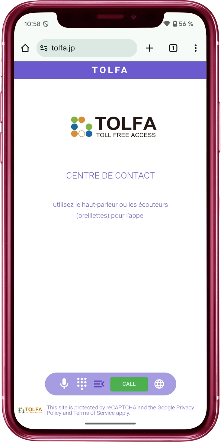 TOLFA est un service exclusivement dédié aux appels sortants, conçu pour connecter les utilisateurs à des voicebots d’IA ou à des centres de contact. Les appels étant effectués via un navigateur web, le numéro affiché n’est pas celui du smartphone, mais un numéro unique attribué par le système.