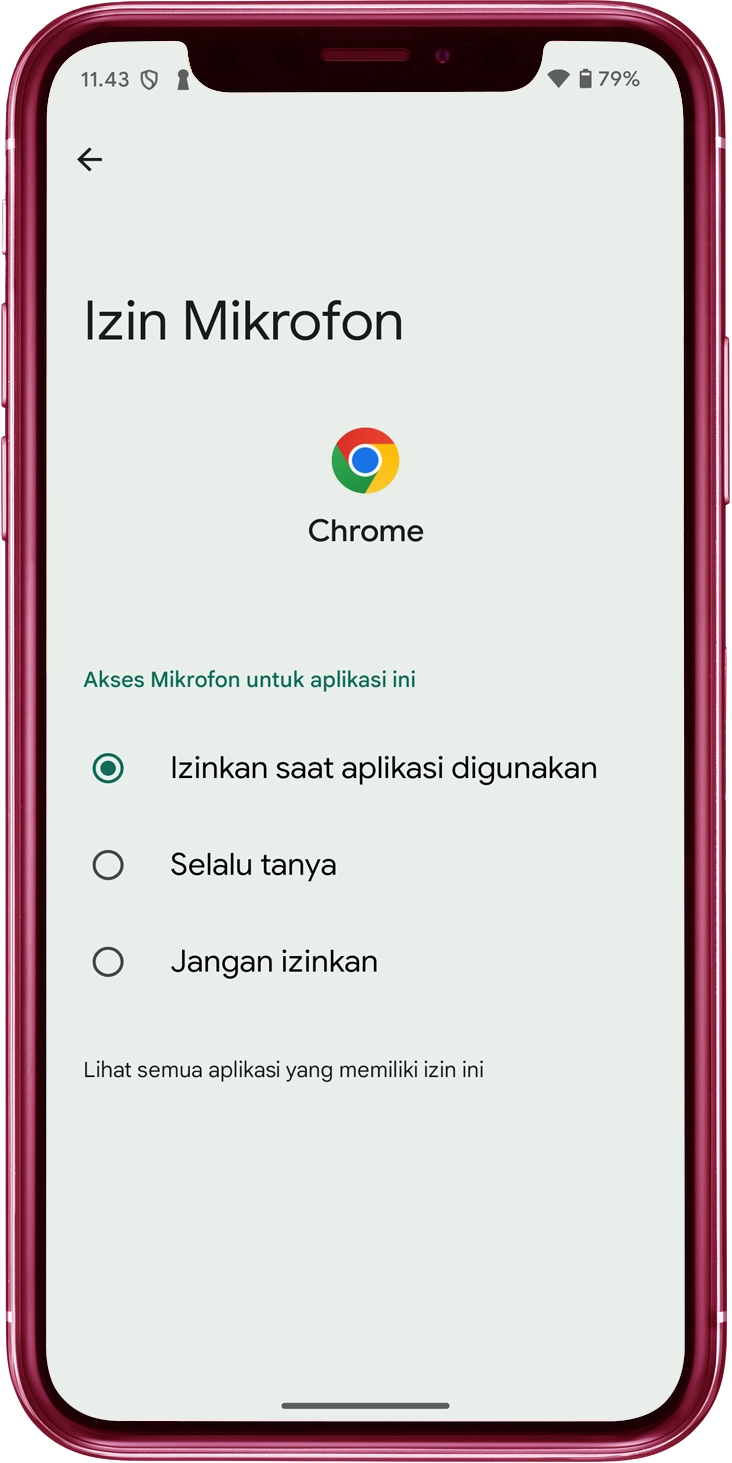 "Izinkan" Geser ke posisi ON di "Izin Mikrofon"