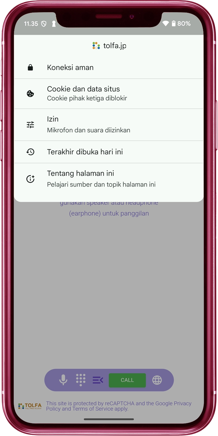 Jika akses mikrofon saat ini tidak diizinkan, Anda harus mencari situs web "tolfa.jp" dalam daftar dan kemudian aktifkan akses mikrofon untuknya.