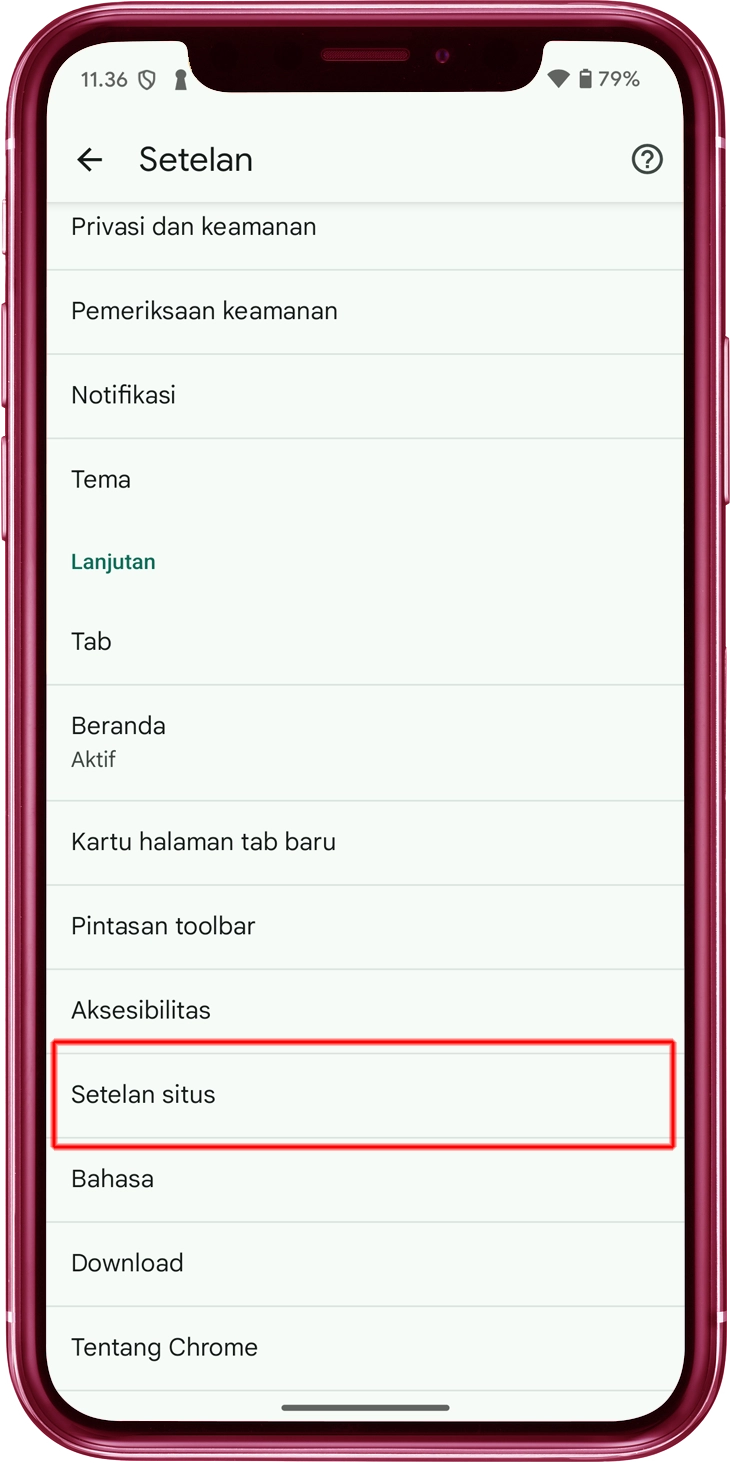 Ketuk "Pengaturan situs" di menu.