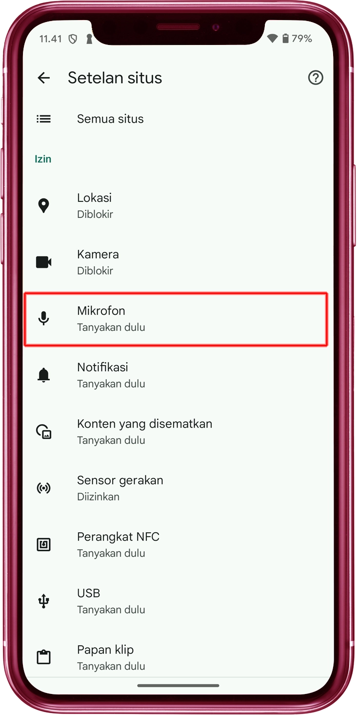 Ketuk "Mikrofon" di "Izin aplikasi".