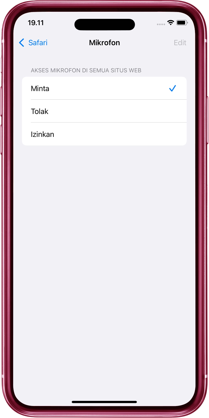 "Izinkan" atau "Tanya" beralih ke ON di menu. Pengaturan ini akan mempengaruhi semua situs web.
