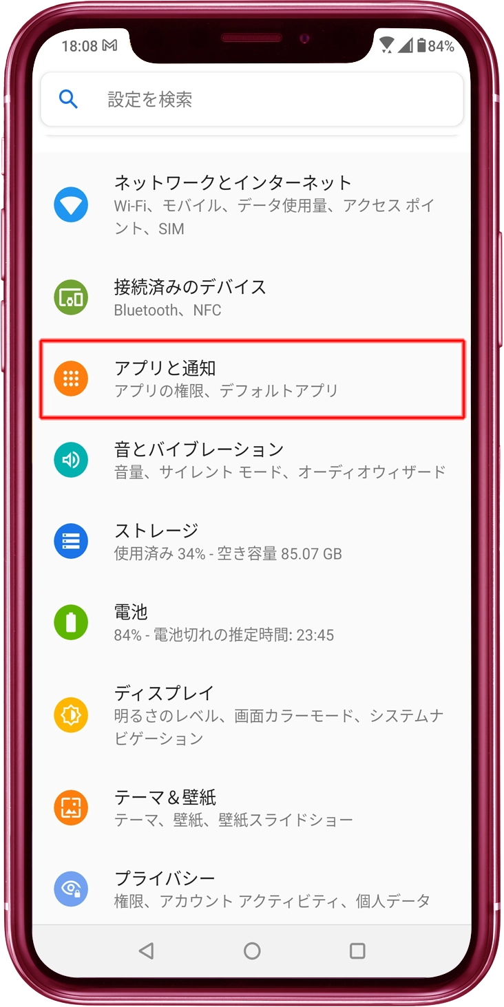 「権限」メニューをタップします。