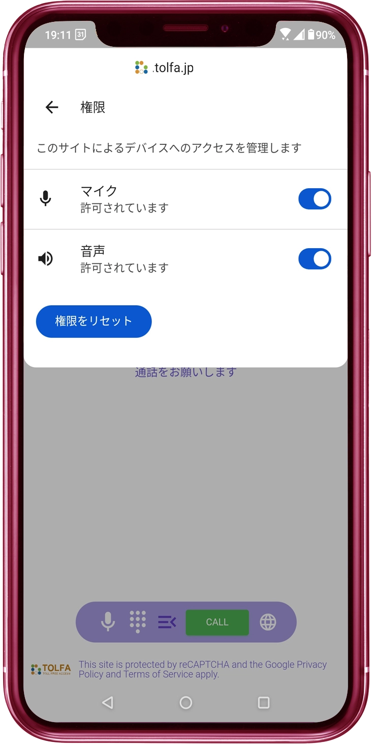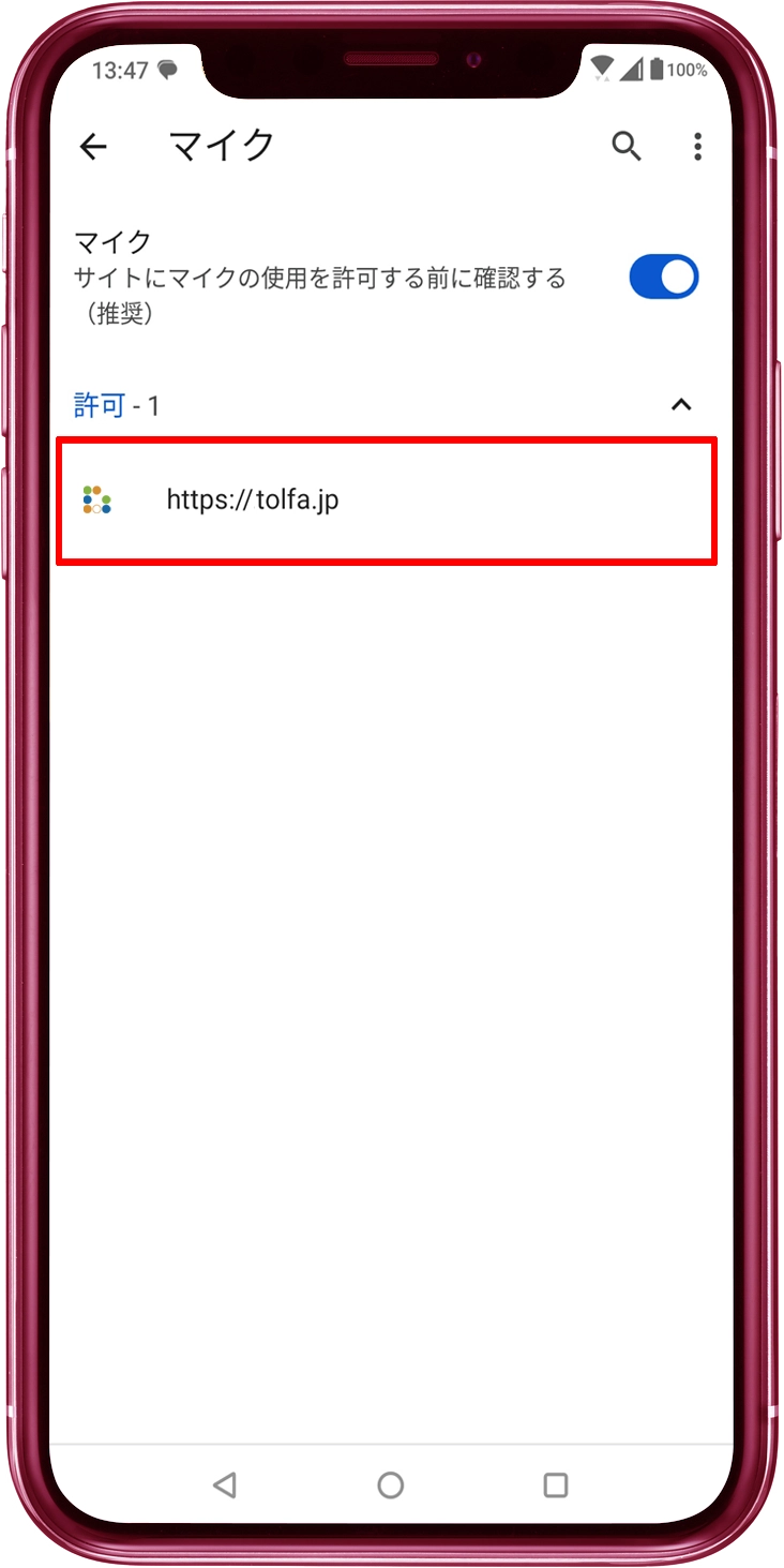 tolfa.jpがマイク利用許可をされていない場合は、リストのtolfa.jpをタップし、マイクの「許可」をONにします。