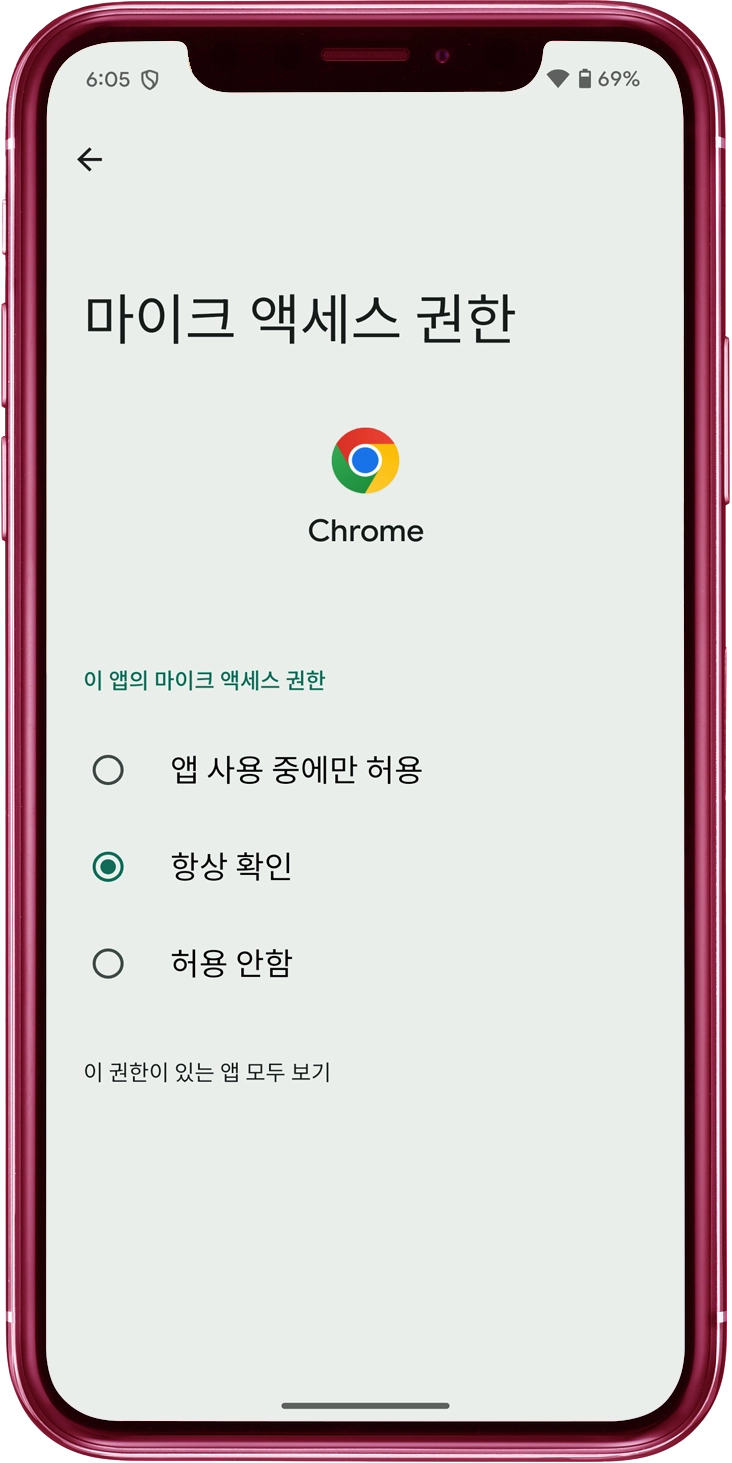 "앱 권한"에서 "마이크"를 탭하세요.