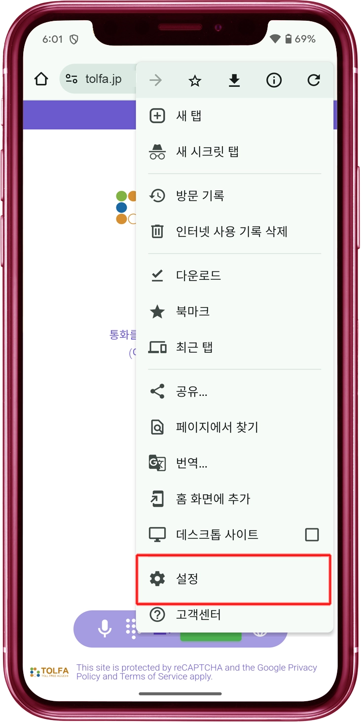 현재 마이크 접근이 허용되지 않은 경우, "tolfa.jp" 웹사이트를 목록에서 찾아 마이크 접근을 허용하세요.
