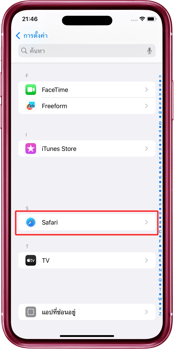 เปิด "แอป" จาก "การตั้งค่า" และแตะที่ "Safari".