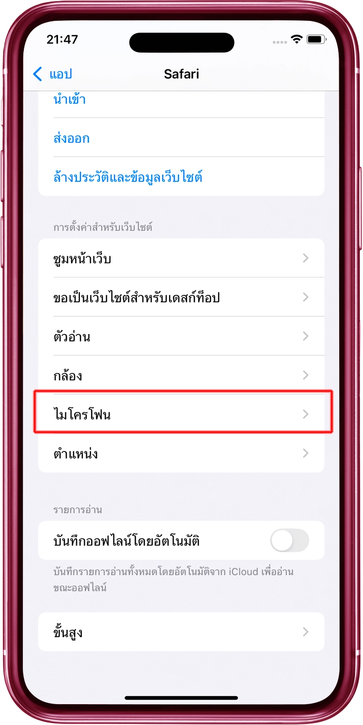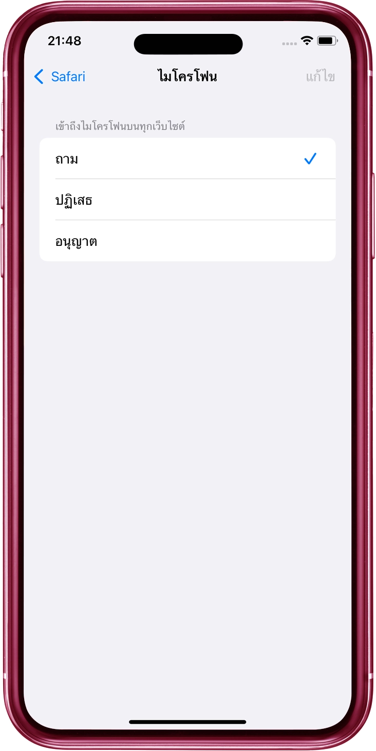 "อนุญาต" หรือ "ถาม" สลับไปที่ ON ในเมนู. การสลับนี้จะมีผลต่อทุกเว็บไซต์.