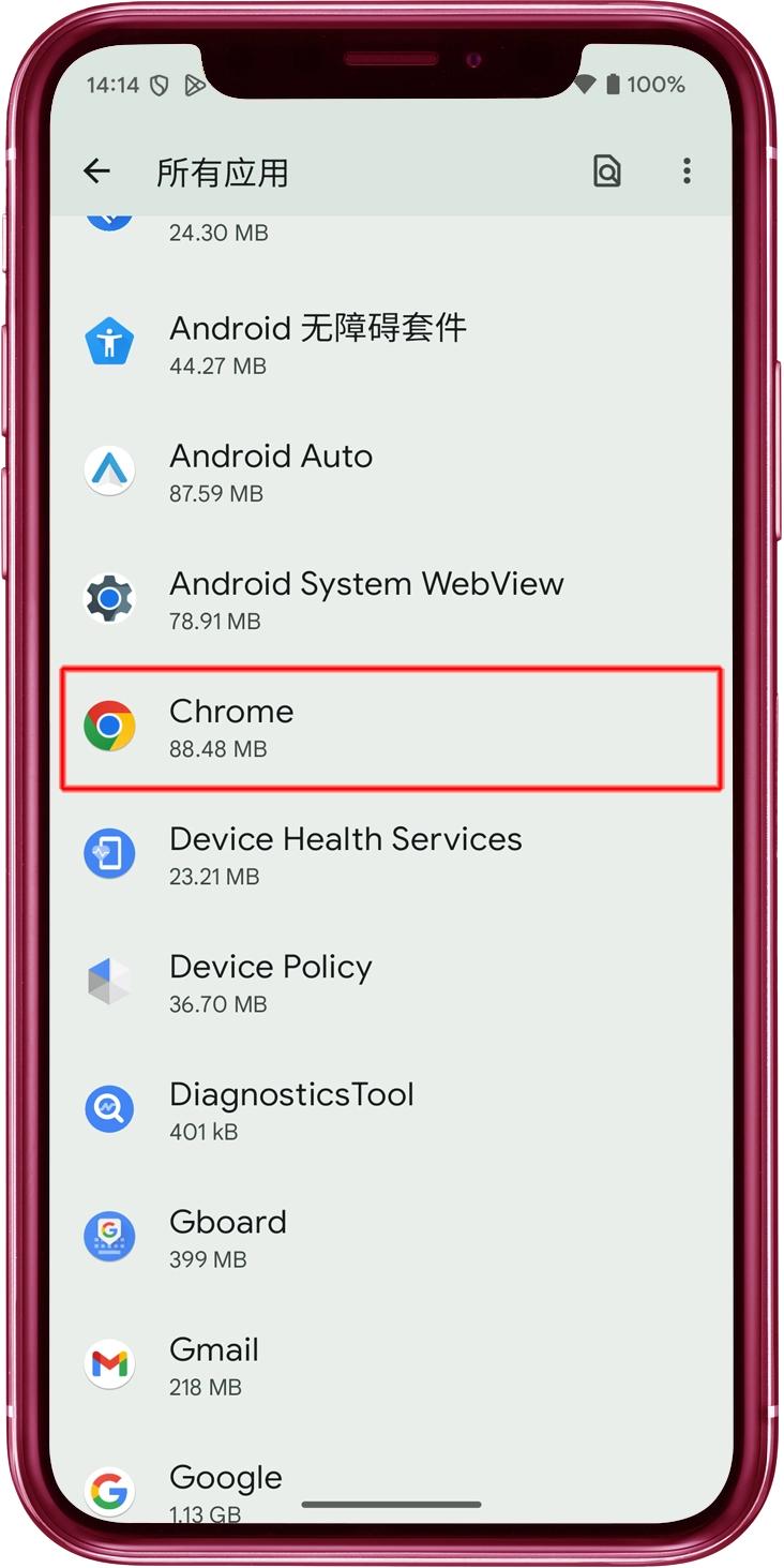 从“最近打开的应用”、“应用信息”或“所有应用”中点击 Chrome 图标。